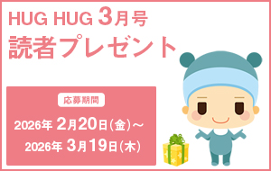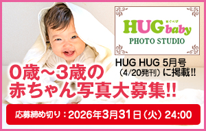 新しい体験にチャレンジ!春の習い事特集2026/HUG HUG編集部がおでかけ「日本一のだがし売場」/家計を応援!節約レシピ/HUG baby PHOTO STUDIO/みんなの写真館/さちこママの魔法のキッチン/HAPPY BIRTHDAY 3月生まれのおともだち