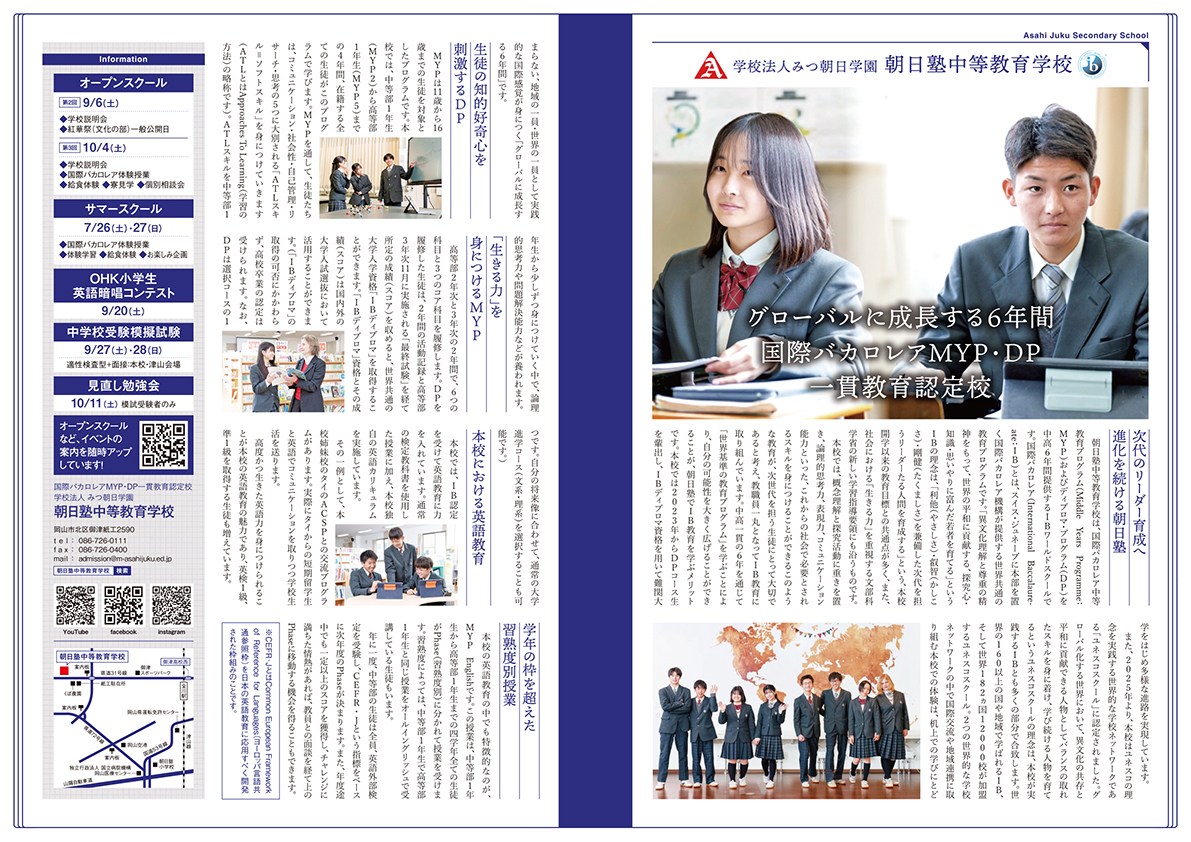 【hugジュニ中学校ガイド2026】国際バカロレアMYP・DP一貫教育認定校 学校法人 みつ朝日学園 朝日塾中等教育学校