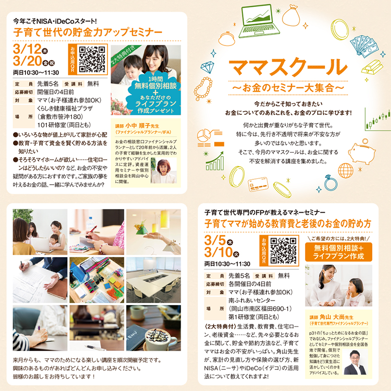 講座の多くは参加費無料など、嬉しいスクールがいっぱいです。